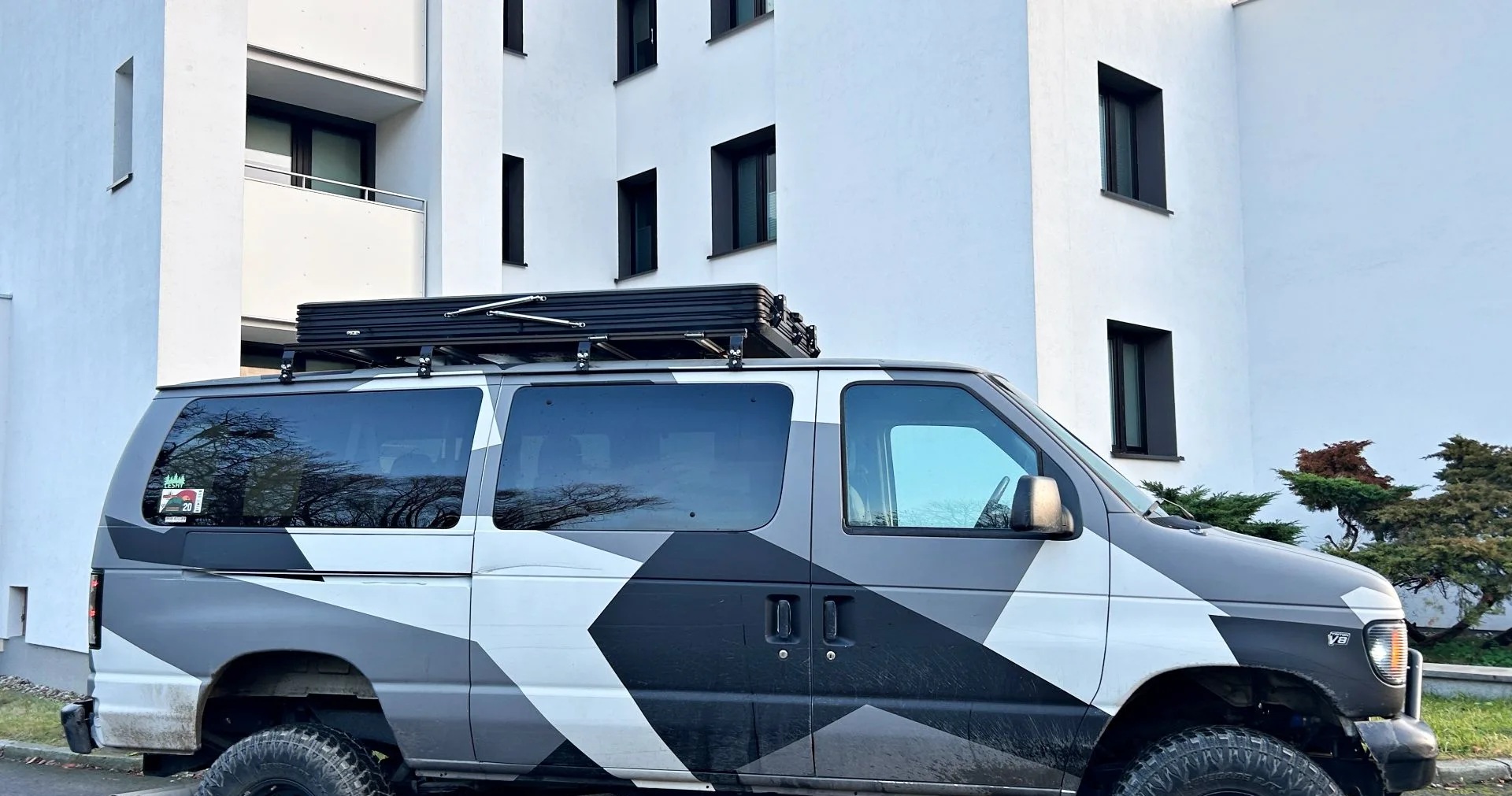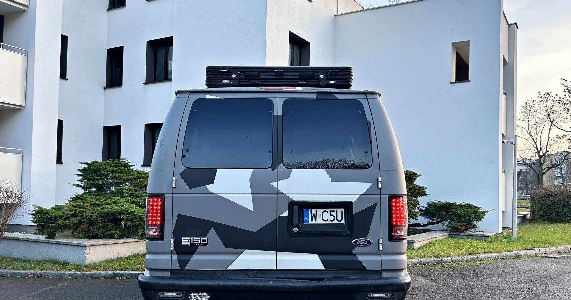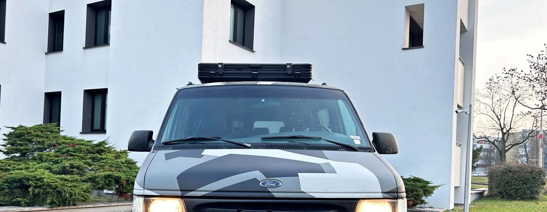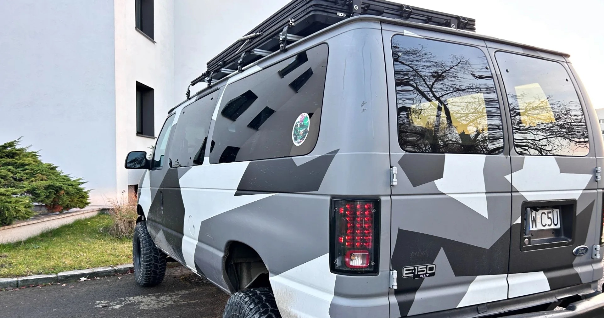 Przedstawiamy bardzo ciekawego Forda opartego na E150/F150, przebudowanego bez kompromisów. Zawieszenie FOX, opony RT 33″, 2 nagrzewnice, klimatyzacja, wydech z kwasówki 2,5″, dwa rzędy siedzeń z Range Rovera Sport.